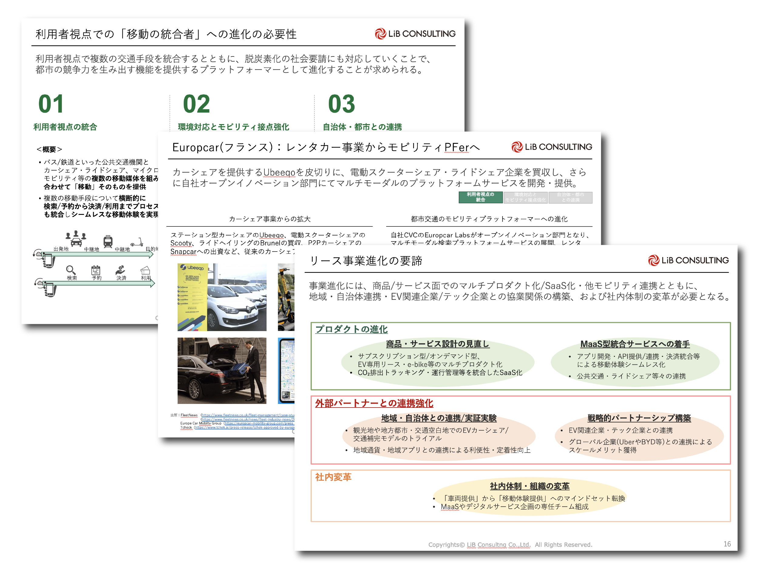 本資料では、こうした市場環境の変化を受け、モビリティサービスへと進化する海外リース企業の最前線の取り組みを紹介しております。