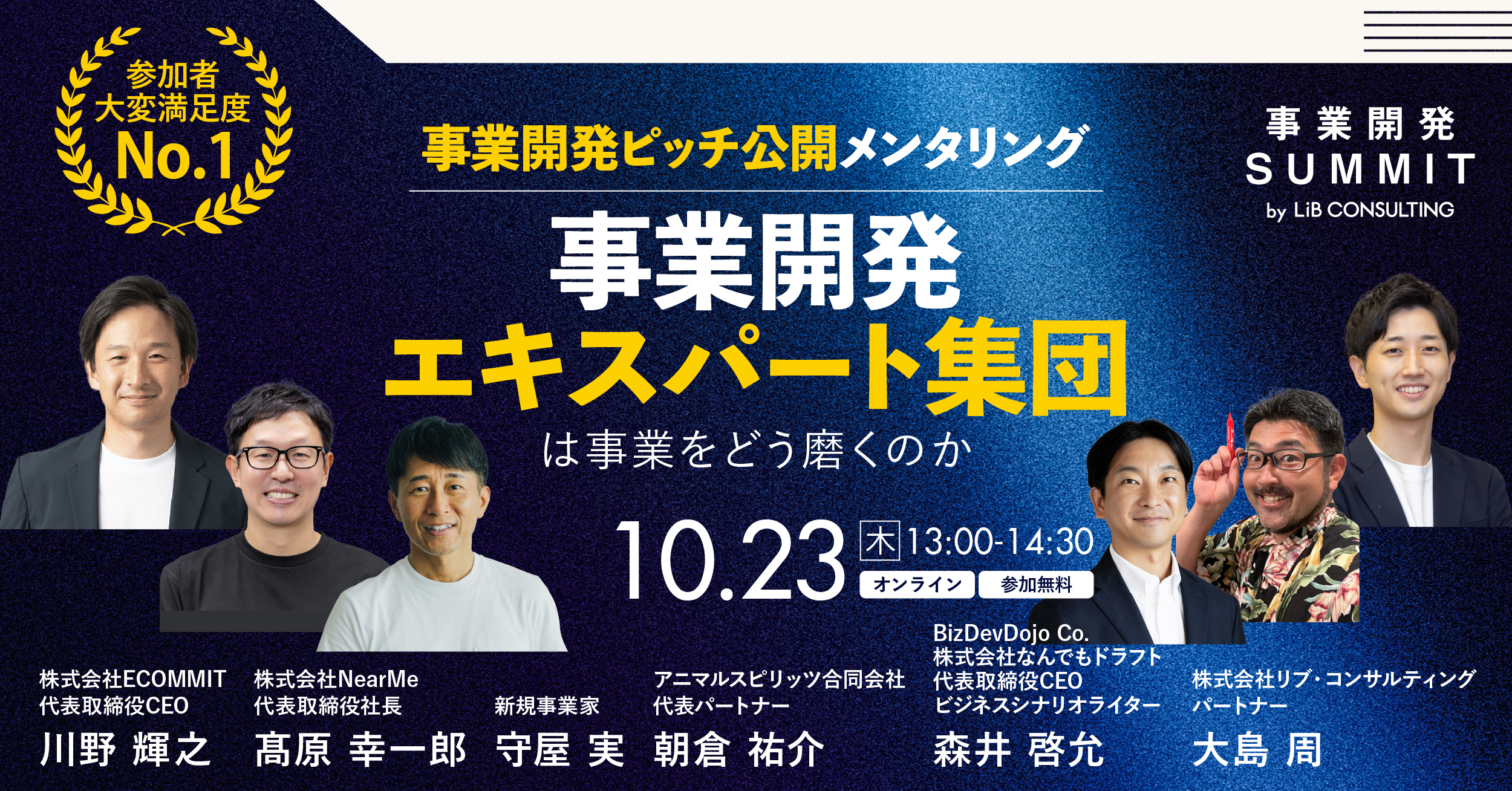 2024年11月に開催した「事業開発サミット2024」18セッションのうち、大変満足度上位のセッションを特別再放送。実績豊富なエキスパートたちが集い、事業家の事業アイデアや戦略に対してレビューを行います。先駆者たちの豊富な経験と深い知識をもとに、具体的な改善点や新たな視点や、事業開発を次のレベルへと引き上げるヒントを提供いたします。