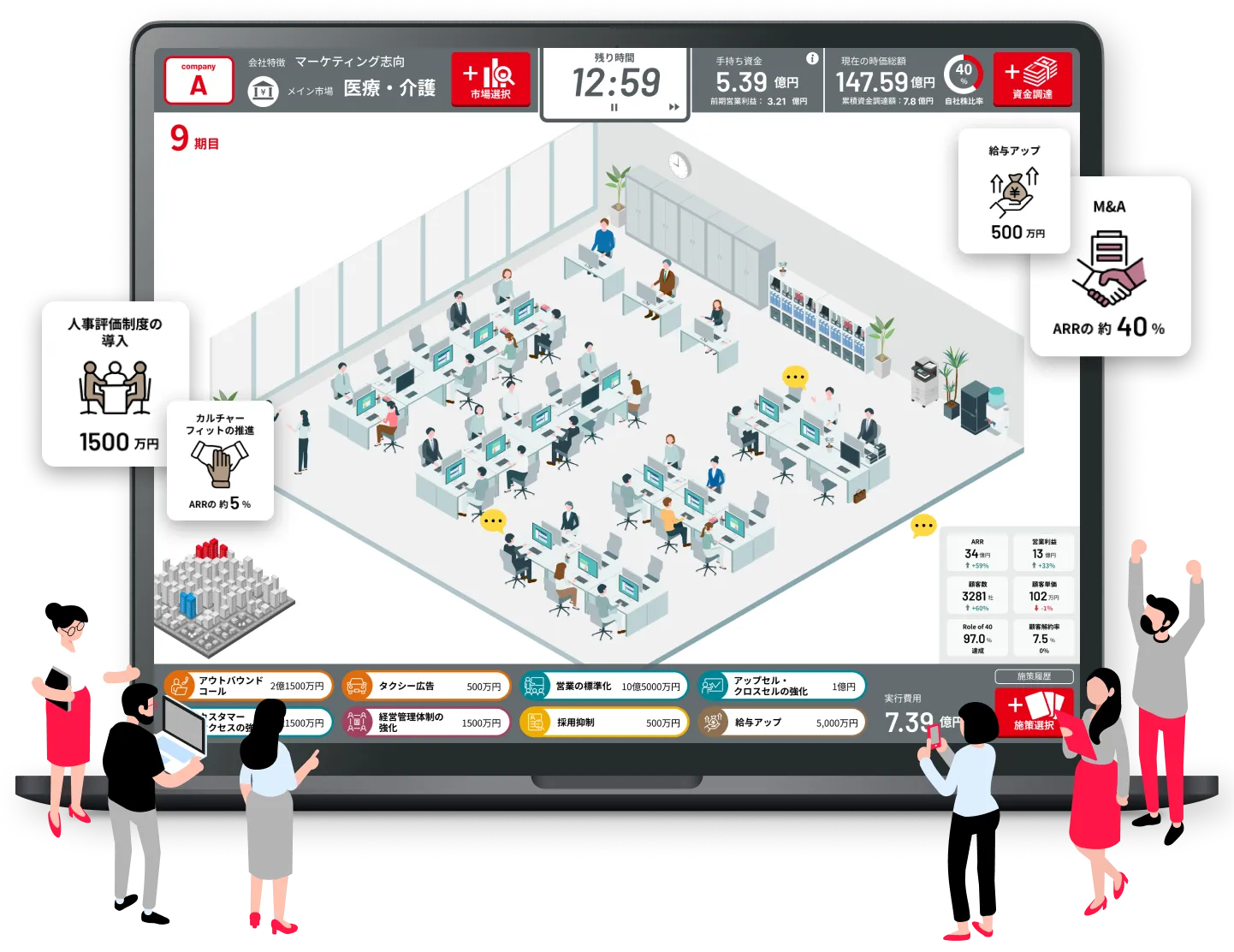 本気で盛り上がる。本気で学びになる。 300社以上の導入実績のある経営シミュレーションゲームで、研修・キックオフ・チームビルディング・オンボーディングをアップデートしませんか。